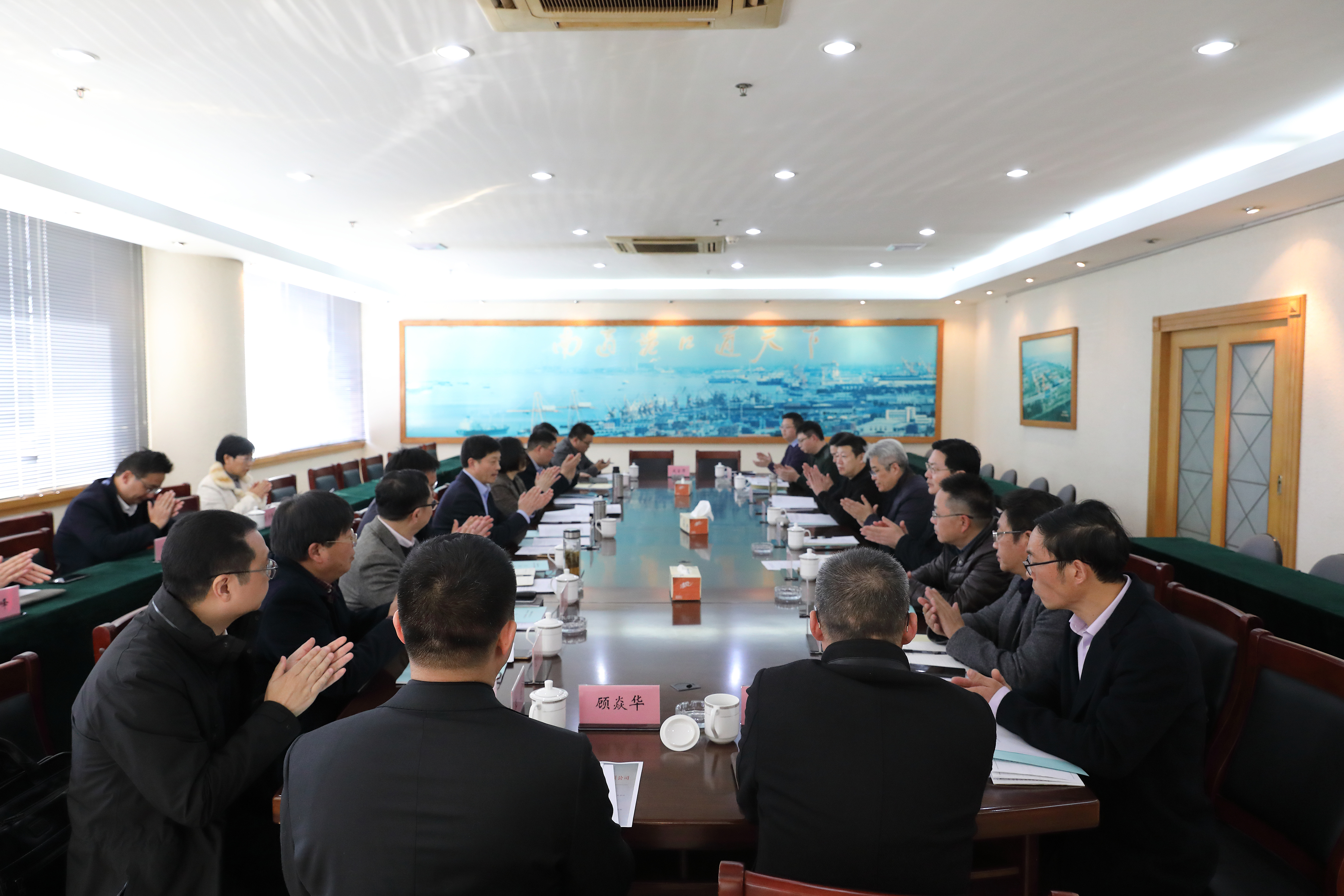 南通港集團(tuán)有限公司第一屆董事會第八次會議暨2019年第一次臨時股東會于2019年12月6日下午在港口大廈一樓會議室召開,集團(tuán)黨委書記、董事長施渠平主持會議,集團(tuán)黨委副書記、總經(jīng)理、副董事長朱玉強和股東代表、集團(tuán)董事出席會議,集團(tuán)黨委副書記、工會主席陳云,紀(jì)委書記崔劍,副總經(jīng)理過興發(fā)及集團(tuán)法律顧問列席會議。