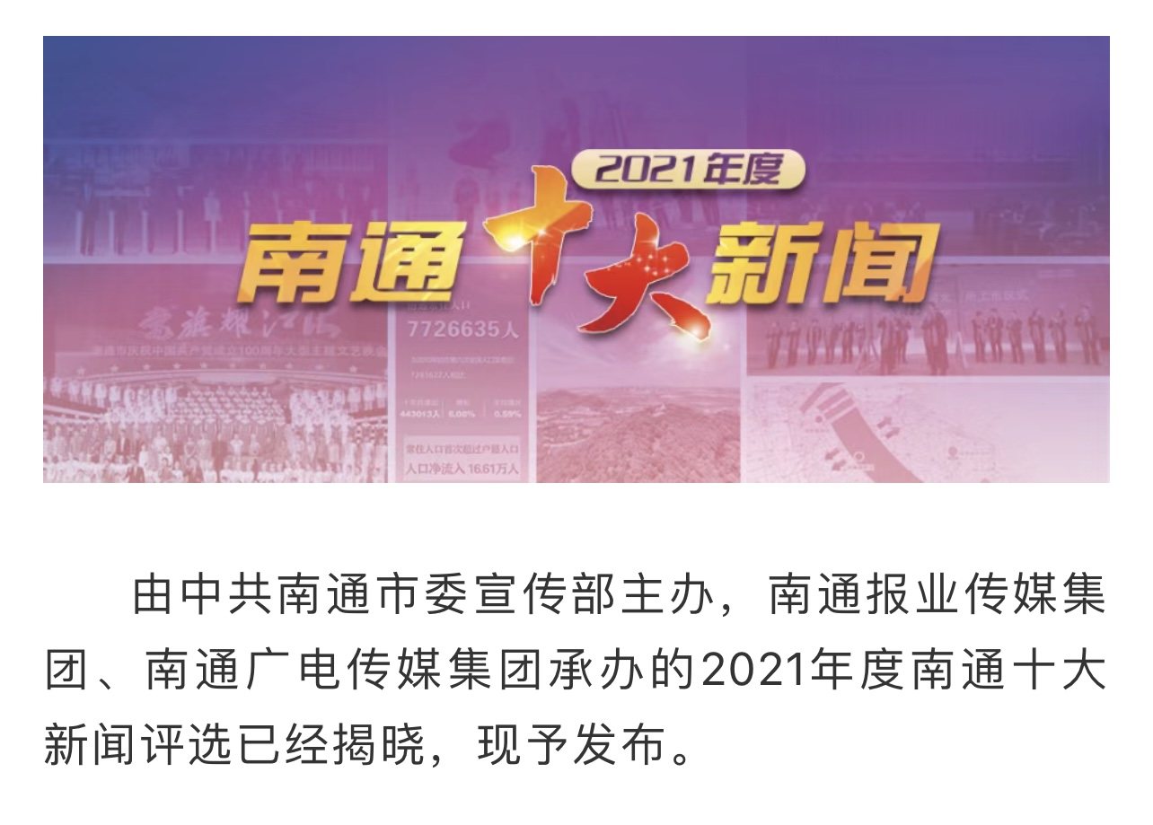 近日,由中共南通市委宣傳部主辦,南通報(bào)業(yè)傳媒集團(tuán)、南通廣電傳媒集團(tuán)承辦的2021年度南通十大新聞評(píng)選結(jié)果揭曉,“通州灣呂四起步港區(qū)10萬(wàn)噸級(jí)通用碼頭正式啟用,通州灣新出海口建設(shè)取得實(shí)質(zhì)性進(jìn)展”成功入選。